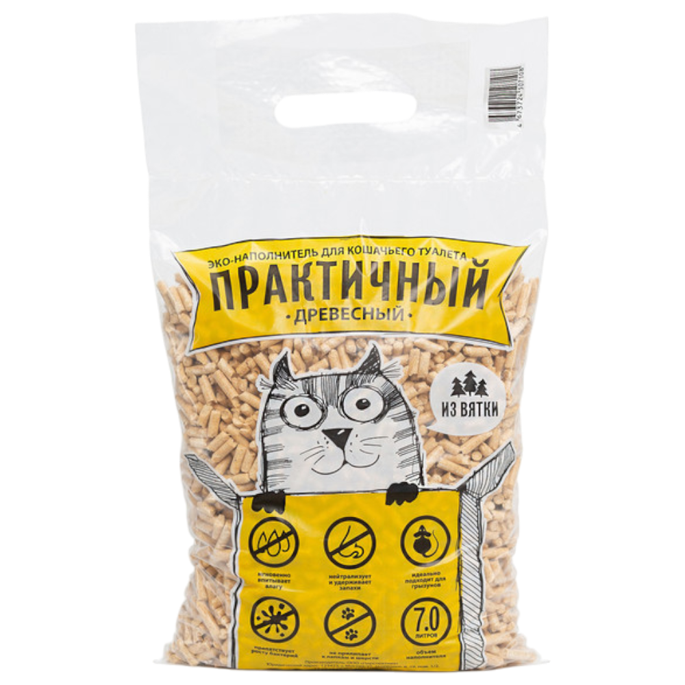 Наполнитель для кошачьих туалетов Практичный древесный хвойный 7л (2кг) ПЕРСПЕКТИВА