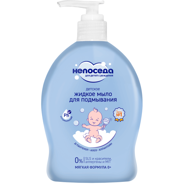 Жидкое мыло с алоэ и аллантоином Непоседа создано специально для ухода за нежной кожей новорожденных.