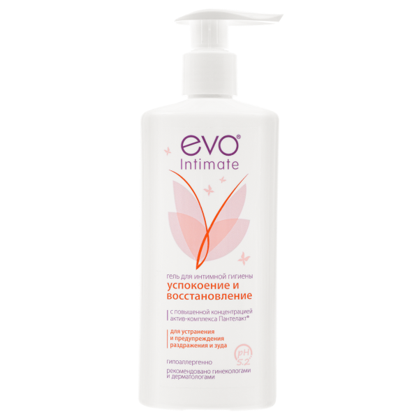 Гель для интимной гигиены EVO Intimate «Успокоение и восстановление» с комплексом «Пантелакт» бережно очищает, успокаивает и восстанавливает кожу и слизистые интимной зоны при раздражении и зуде, в том числе при повышенной чувствительности и сухости в интимной зоне.