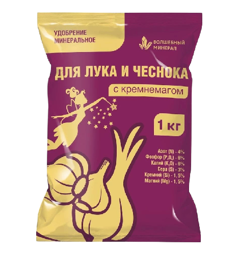 Удобрение минеральное для лука и чеснока с кремнемагом повышает плодородие почв, ускоряет развитие растений, увеличивает урожайность, улучшает качество луковиц.